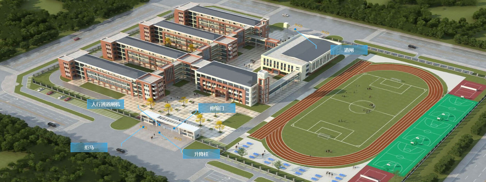 工廠直發(fā) · 品質(zhì)保證 · 全國(guó)聯(lián)保該方案主要應(yīng)用于各地學(xué)校、幼兒園等場(chǎng)合。教育場(chǎng)所就是國(guó)家的未來(lái),對(duì)于學(xué)生的安全必須重視。學(xué)校門(mén)口安全是學(xué)校管理的一個(gè)重要方面,直接關(guān)系到學(xué)生、教職員工以及校園的整體安全。